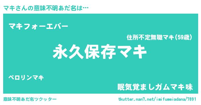| 胡散臭い通販商品みたいなあだ名 | 『来世でも幸せになれる健康食品…その名も「マキ」』 |