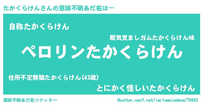 | 男性向けラノベタイトル風あだ名 | 『たかくらけんの憂鬱』 |