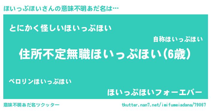 | ポケモン風あだ名 | 『ホーイイ』『ヒホイップホイ』 |