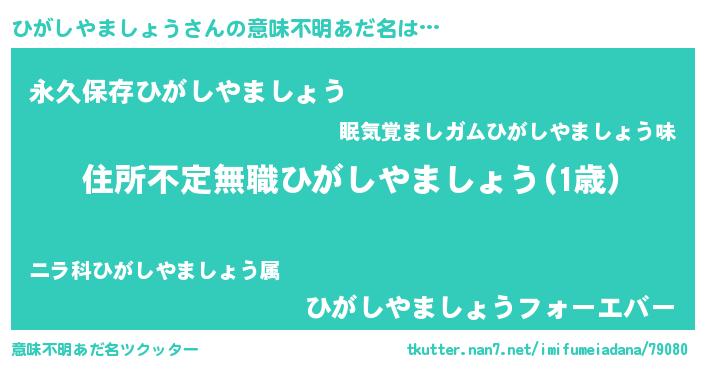 | 欧米人風あだ名 | 『ひがしやましょう・ステッグマイヤー』 |