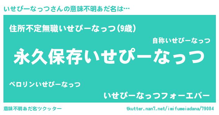 | 男性向けラノベタイトル風あだ名 | 『いせぴーなっつという概念が存在しない退屈な世界 』 |