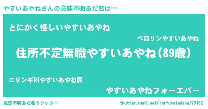 | ポケモン風あだ名 | 『ヤースイ』『ヒヤスイアヤネ』 |