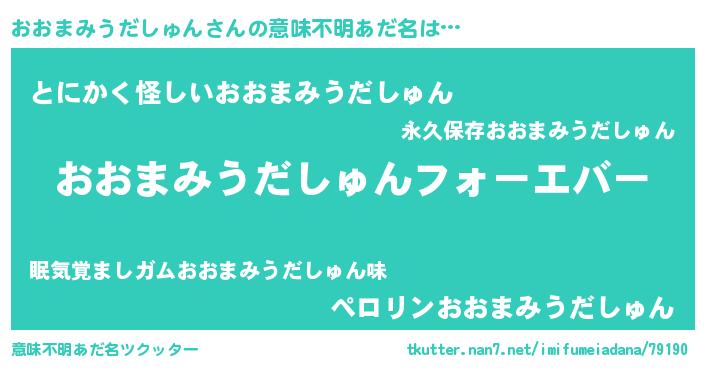 | 男性向けラノベタイトル風あだ名 | 『やはりおおまみうだしゅんの青春ラブコメはまちがっている 』 |