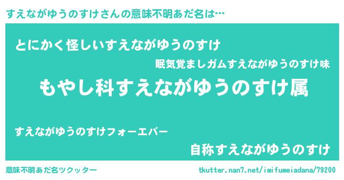 | 男性向けラノベタイトル風あだ名 | 『転生したらすえながゆうのすけだった件』 |