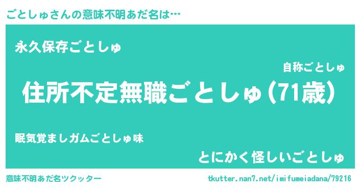 | ヘコむあだ名 | 『ごとしゅ(苦笑)』『ごとっちょ』 |