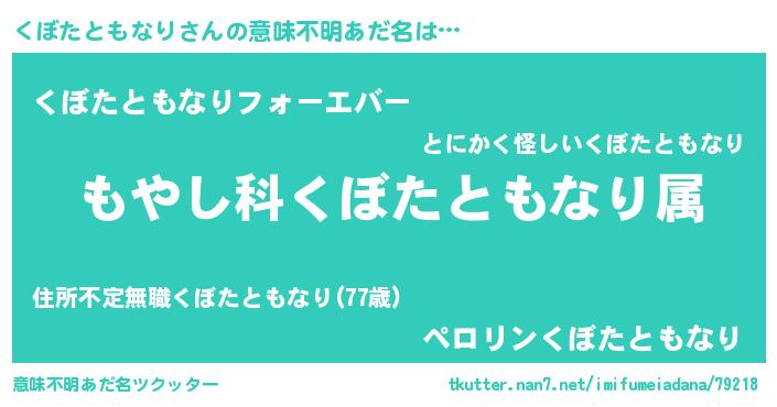 | 胡散臭い通販商品みたいなあだ名 | 『世界が平和になる高級そうな絵画…その名も「くぼたともなり」』 |
