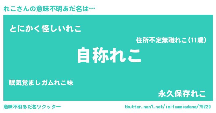 | 女子向けラノベタイトル風あだ名 | 『れこアンティーク』『れこは平凡を望む』 |