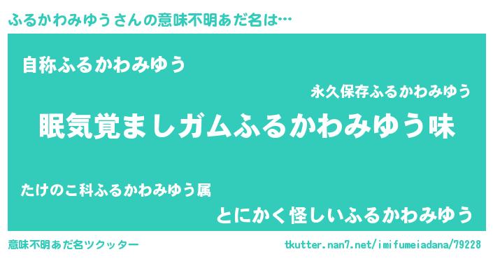 | 男性向けラノベタイトル風あだ名 | 『ノーゲーム・ノーフルカワミユウ』 |