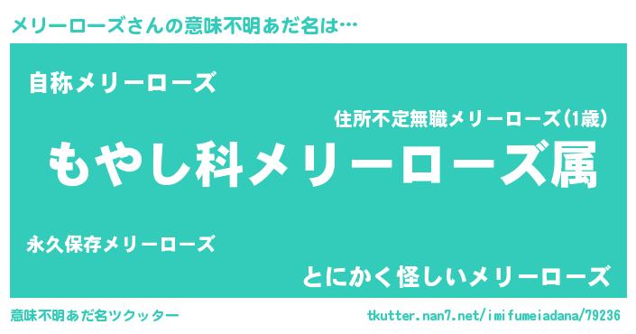 | ヘコむあだ名 | 『メリっ子』『メリーローズ(笑)』 |