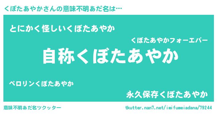 | ポケモン風あだ名 | 『クボセウス』『ヒクボタアヤカ』 |