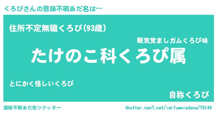 | 男性向けラノベタイトル風あだ名 | 『転生したらくろぴだった件』 |