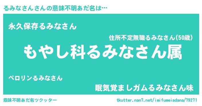 | 男性向けラノベタイトル風あだ名 | 『転生したらるみなさんだった件』 |