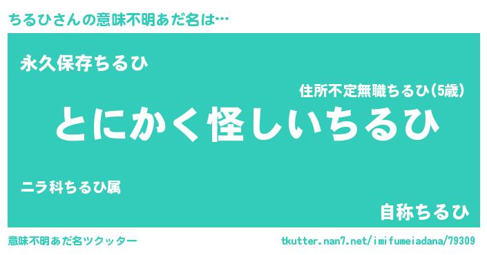 | 男性向けラノベタイトル風あだ名 | 『ちるひの嫁は女の子じゃないと思った?』 |