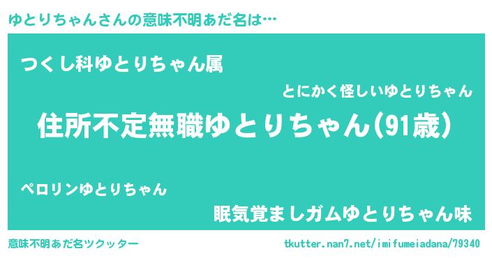 | 男性向けラノベタイトル風あだ名 | 『この素晴らしい世界にゆとりちゃんを!』 |
