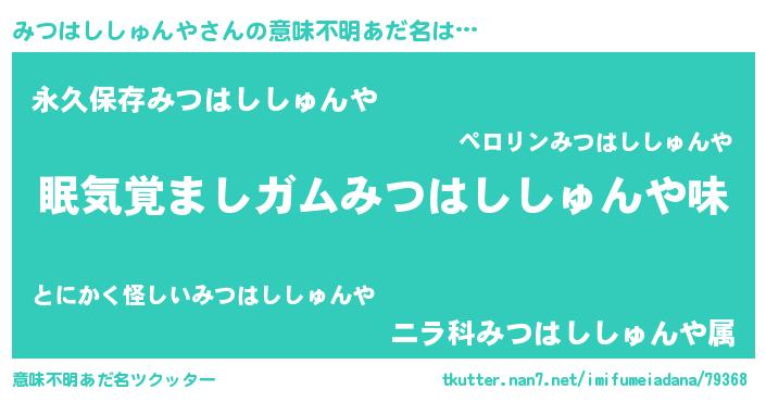 | 胡散臭い通販商品みたいなあだ名 | 『お金では代えられない隕石のかけら…その名も「みつはししゅんや」』 |