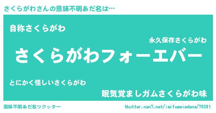 | 男性向けラノベタイトル風あだ名 | 『やはりさくらがわの青春ラブコメはまちがっている 』 |
