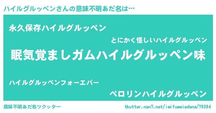 | 男性向けラノベタイトル風あだ名 | 『ノーゲーム・ノーハイルグルッペン』 |