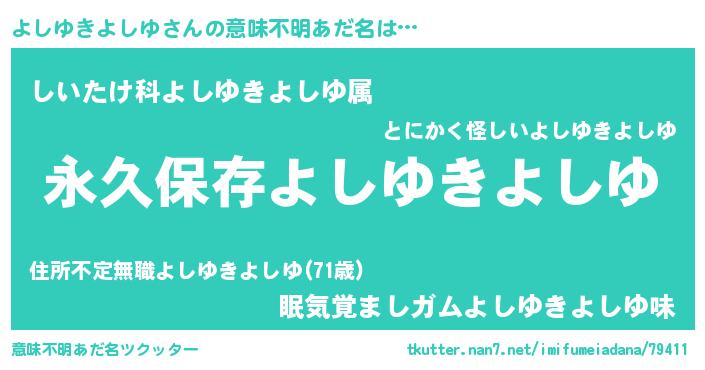 | ヘコむあだ名 | 『よしゆきよしゆ(笑)』『よしお』 |
