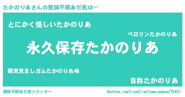 | ポケモン風あだ名 | 『ゼニタカ』『ヒタカノリア』 |