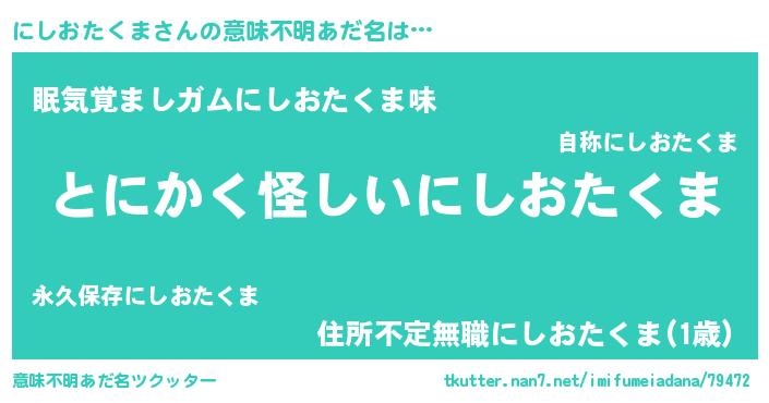 | 胡散臭い通販商品みたいなあだ名 | 『信頼と実績のネックレス…その名も「にしおたくま」』 |