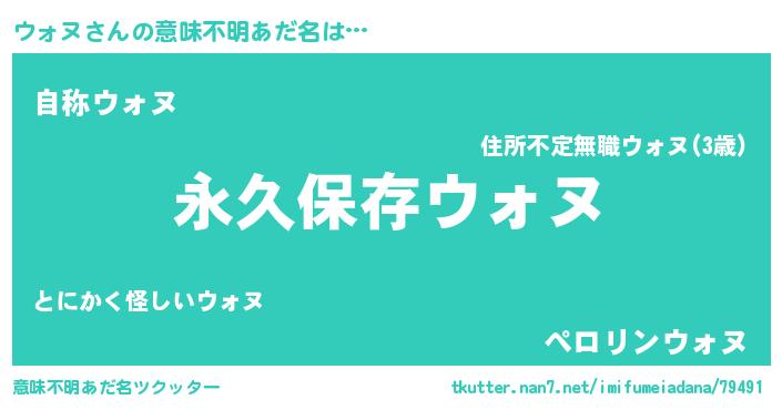 | 男性向けラノベタイトル風あだ名 | 『ウォヌという概念が存在しない退屈な世界 』 |