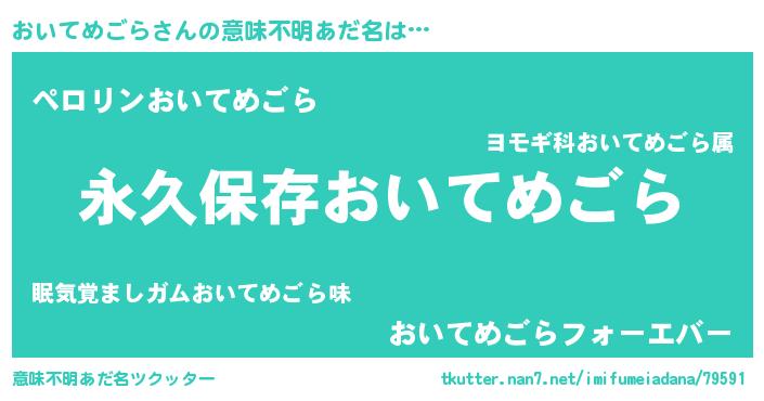 | 男性向けラノベタイトル風あだ名 | 『おいてめごらという概念が存在しない退屈な世界 』 |