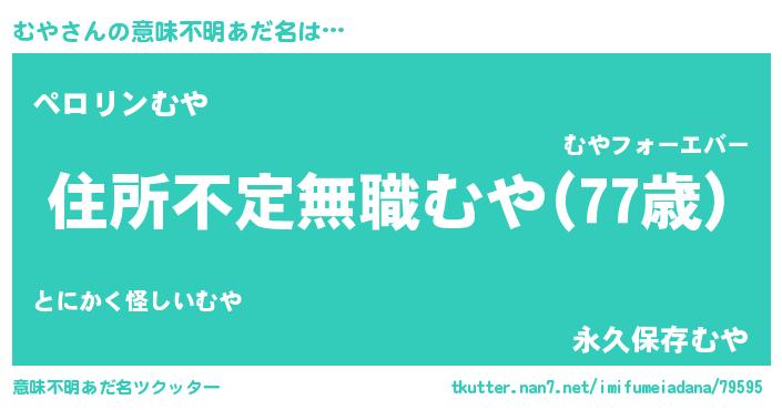 | 男性向けラノベタイトル風あだ名 | 『この素晴らしい世界にむやを!』 |