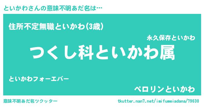 | 男性向けラノベタイトル風あだ名 | 『といかわ~年齢イコール彼女いない歴の魔法使い~』 |