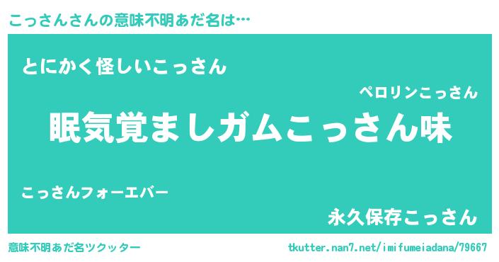 | ヒーロー風カッコイイあだ名 | 『愛の使者こっさん』『炎刃騎士コッ』 |