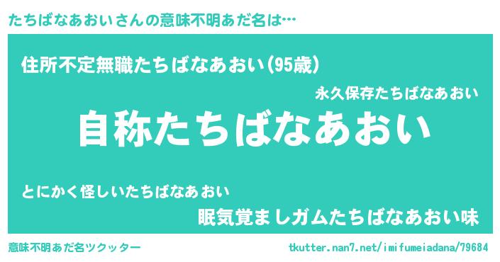 | ヘコむあだ名 | 『たちばなあおい(小並感)』『たちお』 |