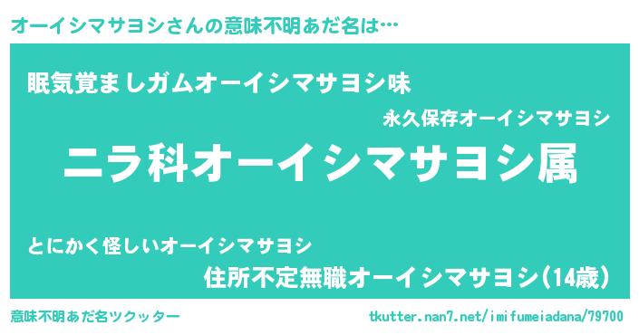 | 男性向けラノベタイトル風あだ名 | 『うちのオーイシマサヨシが世界を掌握している!』 |