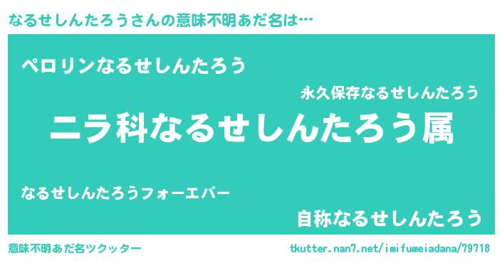 | 男性向けラノベタイトル風あだ名 | 『なるせしんたろう~年齢イコール彼女いない歴の魔法使い~』 |