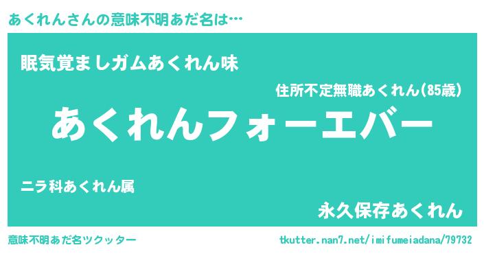 | ヒーロー風カッコイイあだ名 | 『ウルトラあくれんマン』『ネオアクレン』 |
