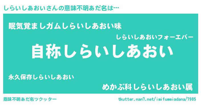 | 胡散臭い通販商品みたいなあだ名 | 『テレビで話題のアガリクス…その名も「しらいしあおい」』 |
