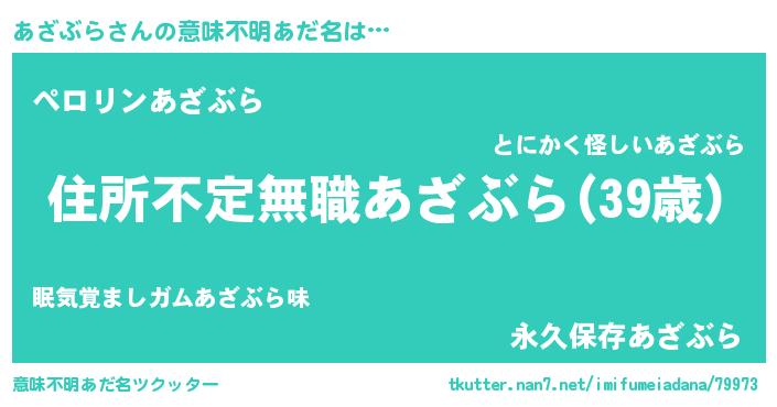 | 男性向けラノベタイトル風あだ名 | 『この素晴らしい世界にあざぶらを!』 |