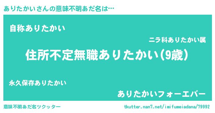 | ヘコむあだ名 | 『豆乳』『ありたかい(笑)』『ありお』 |