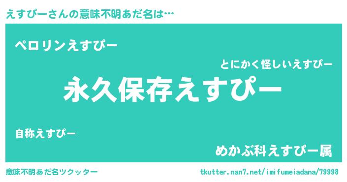 | 男性向けラノベタイトル風あだ名 | 『えすぴーという概念が存在しない退屈な世界 』 |