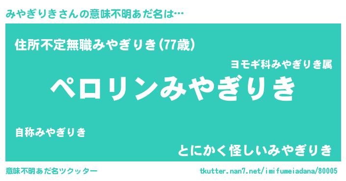 | 欧米人風あだ名 | 『みやぎりき・ステッグマイヤー』 |