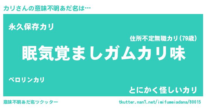 | ヘコむあだ名 | 『カリ(苦笑)』『カリを』『カリもー』 |