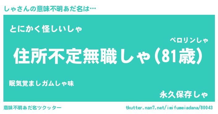 | 男性向けラノベタイトル風あだ名 | 『この素晴らしい世界にしゃを!』 |