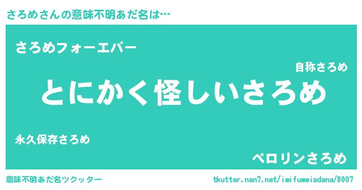 | ヘコむあだ名 | 『さろぷりん』『牛乳』『さろもー』 |
