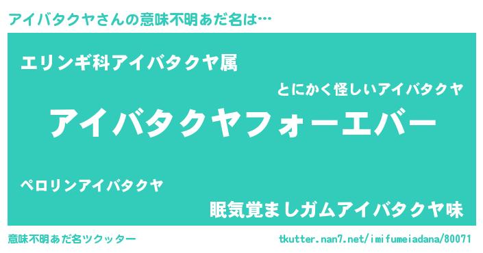 | ファンタジー風あだ名 | 『エターナルアイバタクヤー』 |