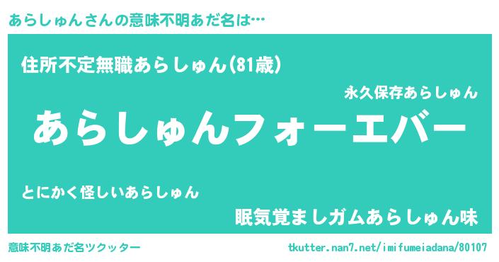 | ファンタジー風あだ名 | 『エターナルアラシュンー』 |