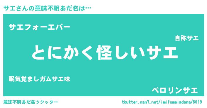 | 女子向けラノベタイトル風あだ名 | 『サエ様がみてる』『サエの婚約者』 |