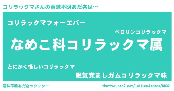 | 料理風あだ名 | 『コリラックマごはん』 |