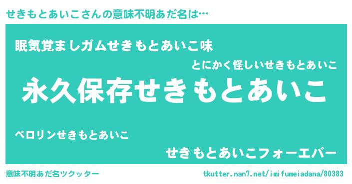 | 可愛いあだ名 | 『せーみん』『せきもとあいこママ』 |