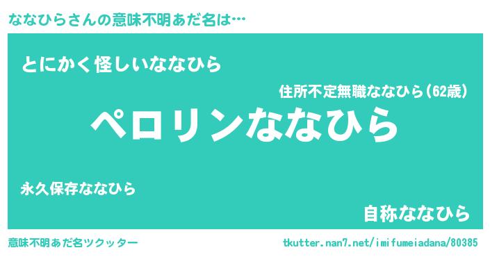| ヘコむあだ名 | 『ななにー』『ななっぺ』『レバニラ』 |