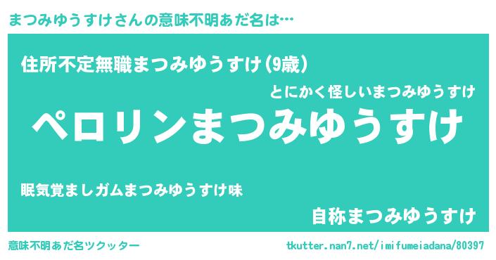 | 男性向けラノベタイトル風あだ名 | 『まつみゆうすけの憂鬱』 |