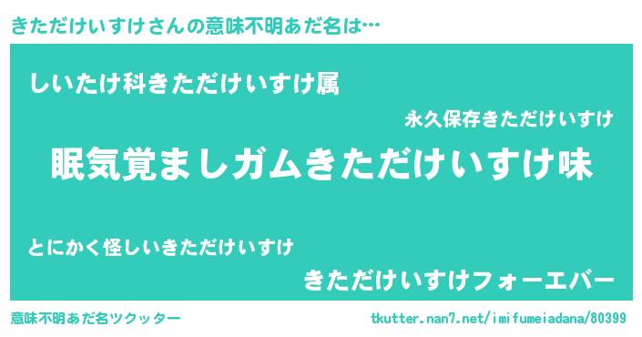 | 男性向けラノベタイトル風あだ名 | 『おまえをオタクにしてやるから、俺をきただけいすけにしてくれ! 』 |