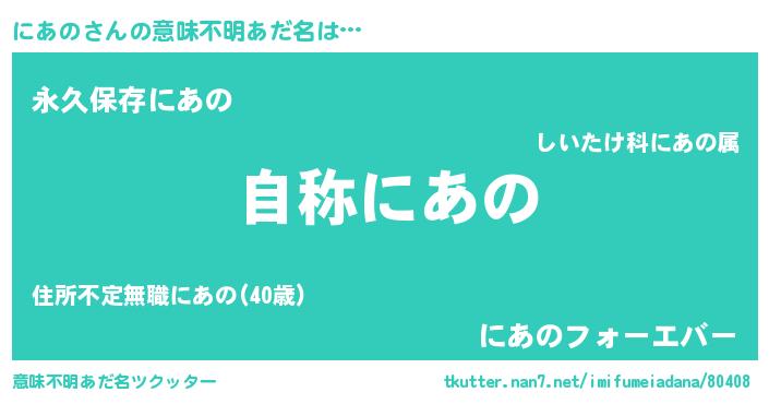| 女子向けラノベタイトル風あだ名 | 『にあのなんてお断りですっ。』 |